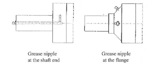 The position of the grease nipples is shown in the figure below.